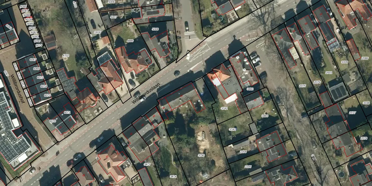Het perceel waarop Willibrorduslaan 50 staat heeft een oppervlakte van 1355 m². Dit is een zeer groot perceel. De perceeloppervlakte wordt geregistreerd door het Kadaster. Gedetailleerde informatie over de maten van dit perceel kunt u vinden in het rapport Kadastrale kaart met maatvoering van Willibrorduslaan 50.