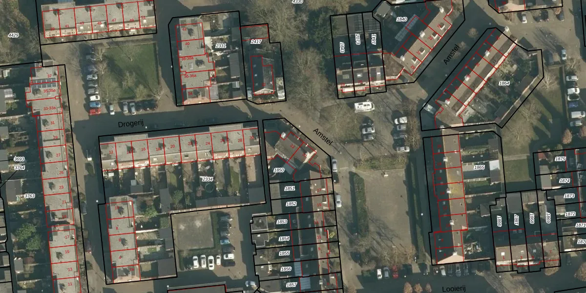 Het perceel waarop Amstel 21 staat heeft een oppervlakte van 365 m². Dit is een groot perceel. De perceeloppervlakte wordt geregistreerd door het Kadaster. Gedetailleerde informatie over de maten van dit perceel kunt u vinden in het rapport Kadastrale kaart met maatvoering van Amstel 21.