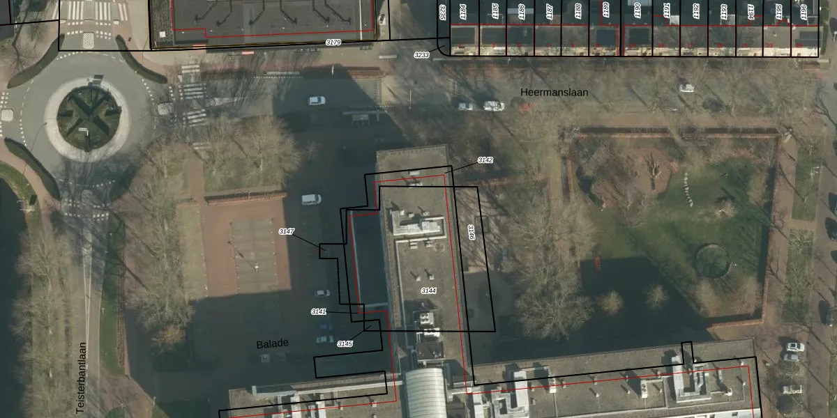 Het perceel waarop Balade 117 staat heeft een oppervlakte van 865 m². Dit is een groot perceel. De perceeloppervlakte wordt geregistreerd door het Kadaster. Gedetailleerde informatie over de maten van dit perceel kunt u vinden in het rapport Kadastrale kaart met maatvoering van Balade 117.