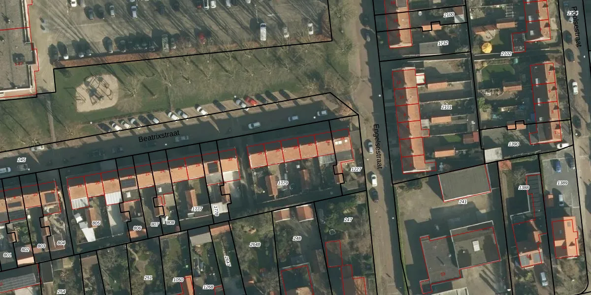 Het perceel waarop Beatrixstraat 38 staat heeft een oppervlakte van 1025 m². Dit is een zeer groot perceel. De perceeloppervlakte wordt geregistreerd door het Kadaster. Gedetailleerde informatie over de maten van dit perceel kunt u vinden in het rapport Kadastrale kaart met maatvoering van Beatrixstraat 38.