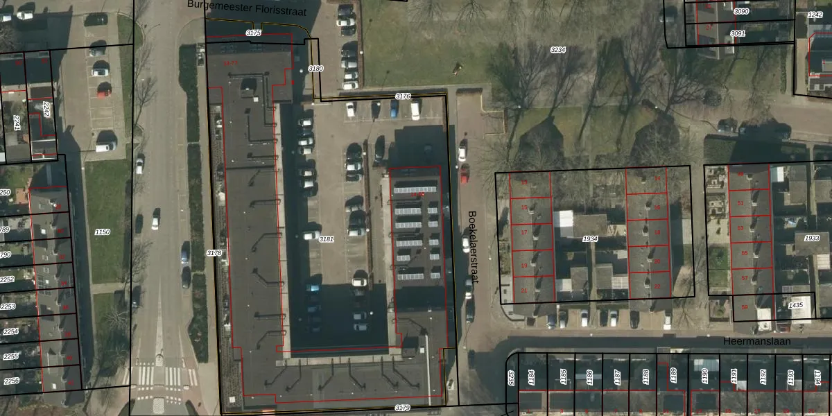 Het perceel waarop Boekelaerstraat 16 staat heeft een oppervlakte van 4557 m². Dit is een zeer groot perceel. De perceeloppervlakte wordt geregistreerd door het Kadaster. Gedetailleerde informatie over de maten van dit perceel kunt u vinden in het rapport Kadastrale kaart met maatvoering van Boekelaerstraat 16.