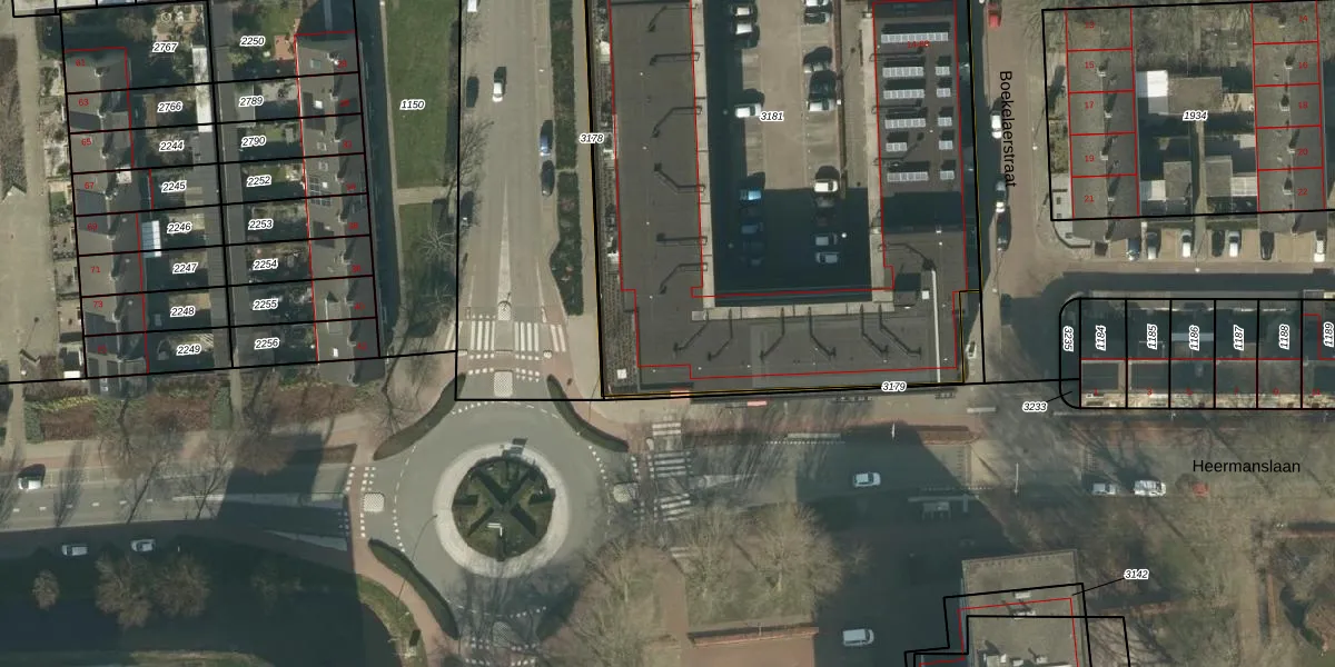 Het perceel waarop Boekelaerstraat 68 staat heeft een oppervlakte van 4557 m². Dit is een zeer groot perceel. De perceeloppervlakte wordt geregistreerd door het Kadaster. Gedetailleerde informatie over de maten van dit perceel kunt u vinden in het rapport Kadastrale kaart met maatvoering van Boekelaerstraat 68.