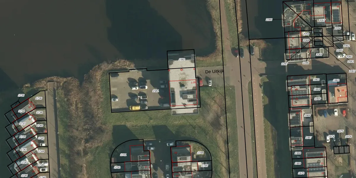 De Uitkijk 19 is gelegen op kadastraal perceel SPR01C1581. Deze kadastrale aanduiding is uniek en wordt gebruikt door het Kadaster om eigendomsrechten en andere zakelijke rechten vast te leggen. Het perceel maakt onderdeel uit van de kadastrale gemeente Sprang.