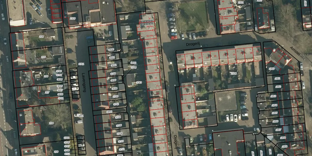 Het perceel waarop Drogerij 23 staat heeft een oppervlakte van 2774 m². Dit is een zeer groot perceel. De perceeloppervlakte wordt geregistreerd door het Kadaster. Gedetailleerde informatie over de maten van dit perceel kunt u vinden in het rapport Kadastrale kaart met maatvoering van Drogerij 23.