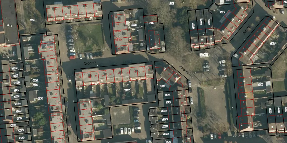 Het perceel waarop Drogerij 28 staat heeft een oppervlakte van 2087 m². Dit is een zeer groot perceel. De perceeloppervlakte wordt geregistreerd door het Kadaster. Gedetailleerde informatie over de maten van dit perceel kunt u vinden in het rapport Kadastrale kaart met maatvoering van Drogerij 28.