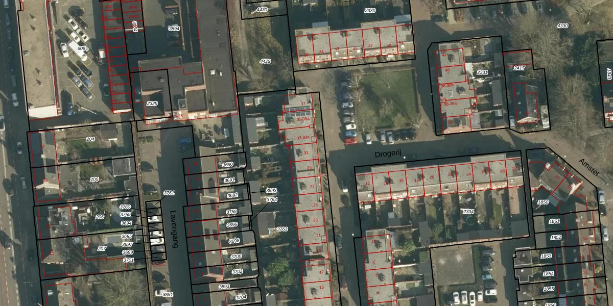 Het perceel waarop Drogerij 31 staat heeft een oppervlakte van 2774 m². Dit is een zeer groot perceel. De perceeloppervlakte wordt geregistreerd door het Kadaster. Gedetailleerde informatie over de maten van dit perceel kunt u vinden in het rapport Kadastrale kaart met maatvoering van Drogerij 31.