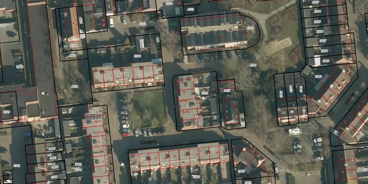 Het perceel waarop Drogerij 40 staat heeft een oppervlakte van 706 m². Dit is een groot perceel. De perceeloppervlakte wordt geregistreerd door het Kadaster. Gedetailleerde informatie over de maten van dit perceel kunt u vinden in het rapport Kadastrale kaart met maatvoering van Drogerij 40.