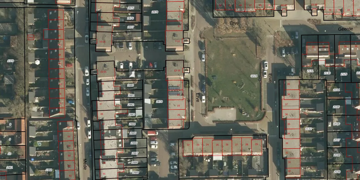 Het perceel waarop Erve 17 staat heeft een oppervlakte van 1095 m². Dit is een zeer groot perceel. De perceeloppervlakte wordt geregistreerd door het Kadaster. Gedetailleerde informatie over de maten van dit perceel kunt u vinden in het rapport Kadastrale kaart met maatvoering van Erve 17.