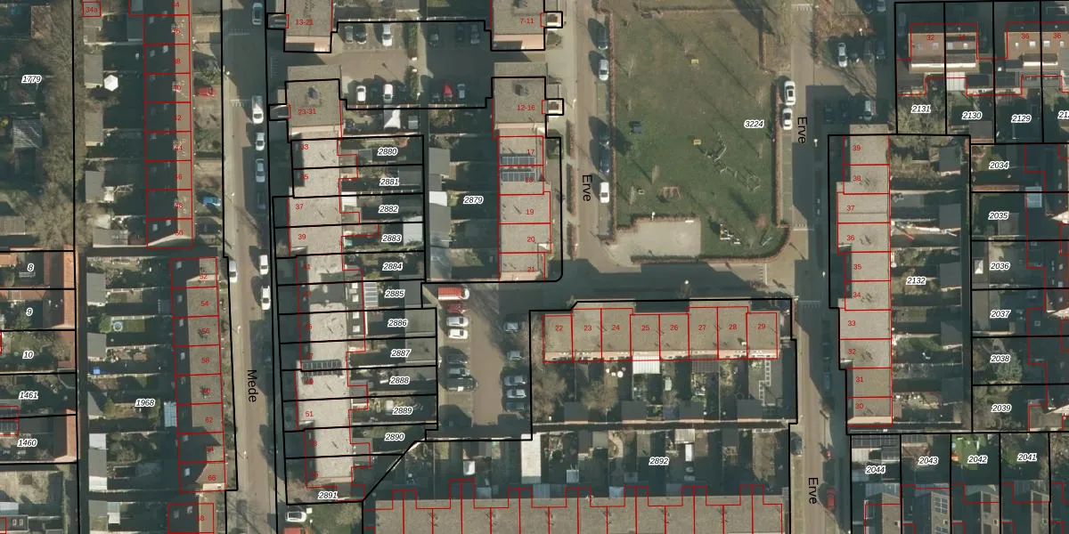 Het perceel waarop Erve 21 staat heeft een oppervlakte van 1095 m². Dit is een zeer groot perceel. De perceeloppervlakte wordt geregistreerd door het Kadaster. Gedetailleerde informatie over de maten van dit perceel kunt u vinden in het rapport Kadastrale kaart met maatvoering van Erve 21.