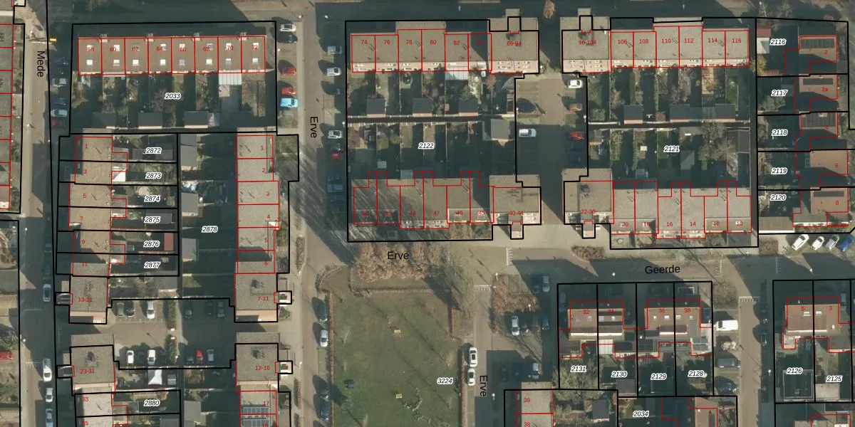 Het perceel waarop Erve 47 staat heeft een oppervlakte van 2130 m². Dit is een zeer groot perceel. De perceeloppervlakte wordt geregistreerd door het Kadaster. Gedetailleerde informatie over de maten van dit perceel kunt u vinden in het rapport Kadastrale kaart met maatvoering van Erve 47.