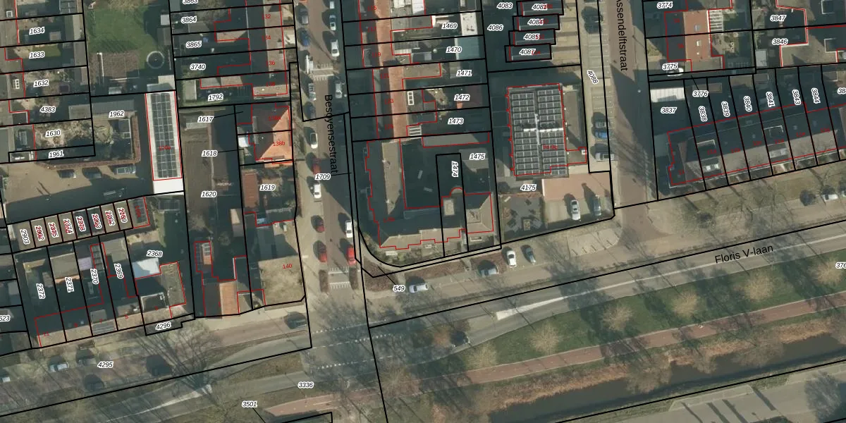 Het perceel waarop Floris V-laan 3-d staat heeft een oppervlakte van 793 m². Dit is een groot perceel. De perceeloppervlakte wordt geregistreerd door het Kadaster. Gedetailleerde informatie over de maten van dit perceel kunt u vinden in het rapport Kadastrale kaart met maatvoering van Floris V-laan 3-d.