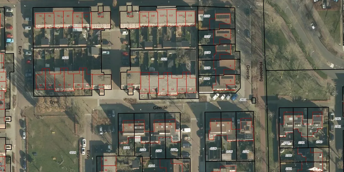 Het perceel waarop Geerde 14 staat heeft een oppervlakte van 2210 m². Dit is een zeer groot perceel. De perceeloppervlakte wordt geregistreerd door het Kadaster. Gedetailleerde informatie over de maten van dit perceel kunt u vinden in het rapport Kadastrale kaart met maatvoering van Geerde 14.