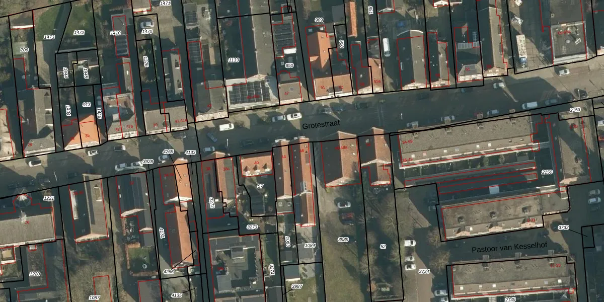 Het perceel waarop Grotestraat 46 staat heeft een oppervlakte van 311 m². Dit is een groot perceel. De perceeloppervlakte wordt geregistreerd door het Kadaster. Gedetailleerde informatie over de maten van dit perceel kunt u vinden in het rapport Kadastrale kaart met maatvoering van Grotestraat 46.