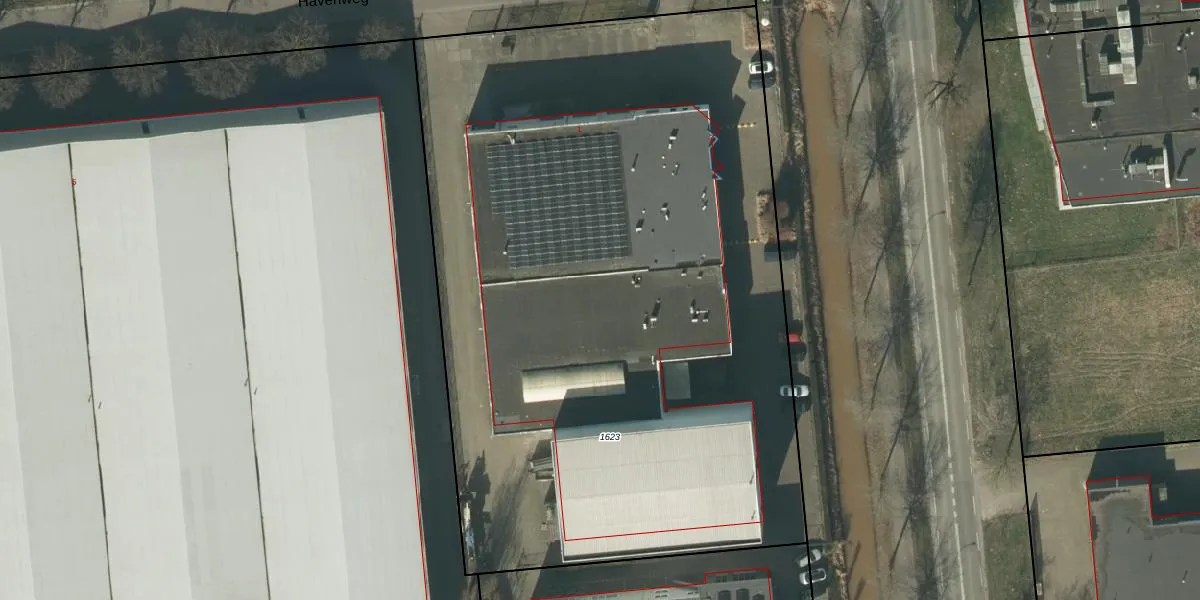 Het perceel waarop Havenweg 1 staat heeft een oppervlakte van 5150 m². Dit is een zeer groot perceel. De perceeloppervlakte wordt geregistreerd door het Kadaster. Gedetailleerde informatie over de maten van dit perceel kunt u vinden in het rapport Kadastrale kaart met maatvoering van Havenweg 1.
