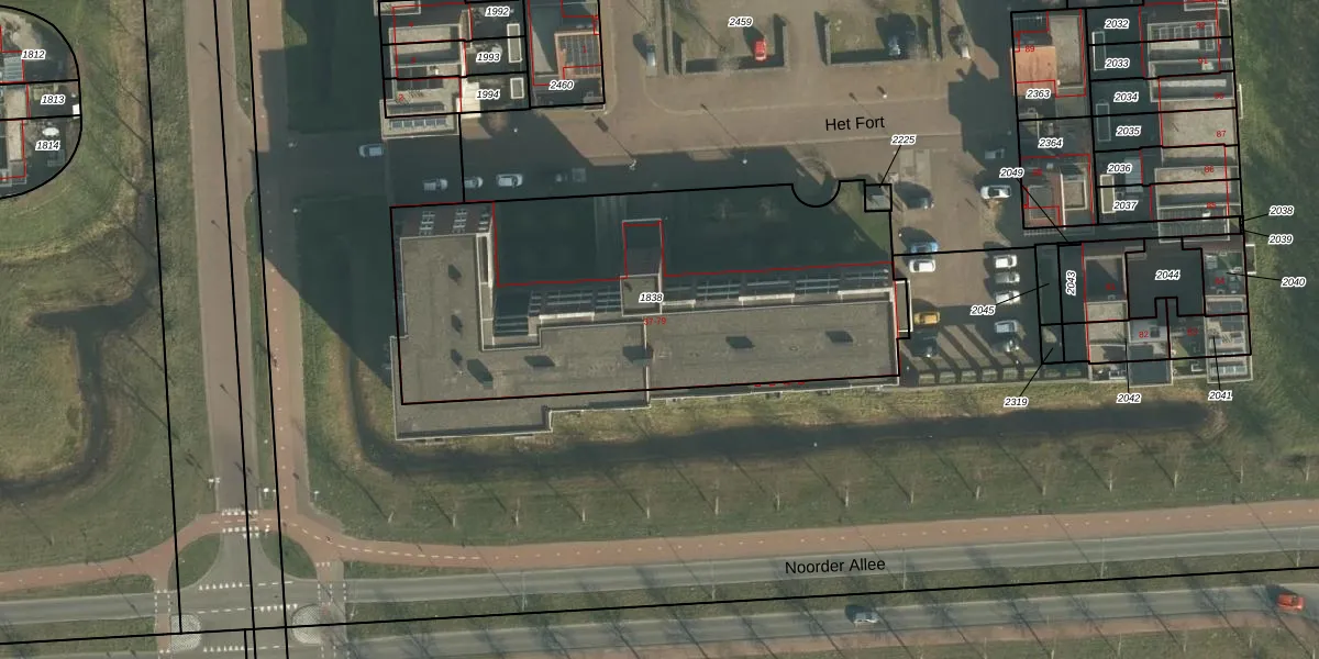 Het perceel waarop Het Fort 49 staat heeft een oppervlakte van 2240 m². Dit is een zeer groot perceel. De perceeloppervlakte wordt geregistreerd door het Kadaster. Gedetailleerde informatie over de maten van dit perceel kunt u vinden in het rapport Kadastrale kaart met maatvoering van Het Fort 49.