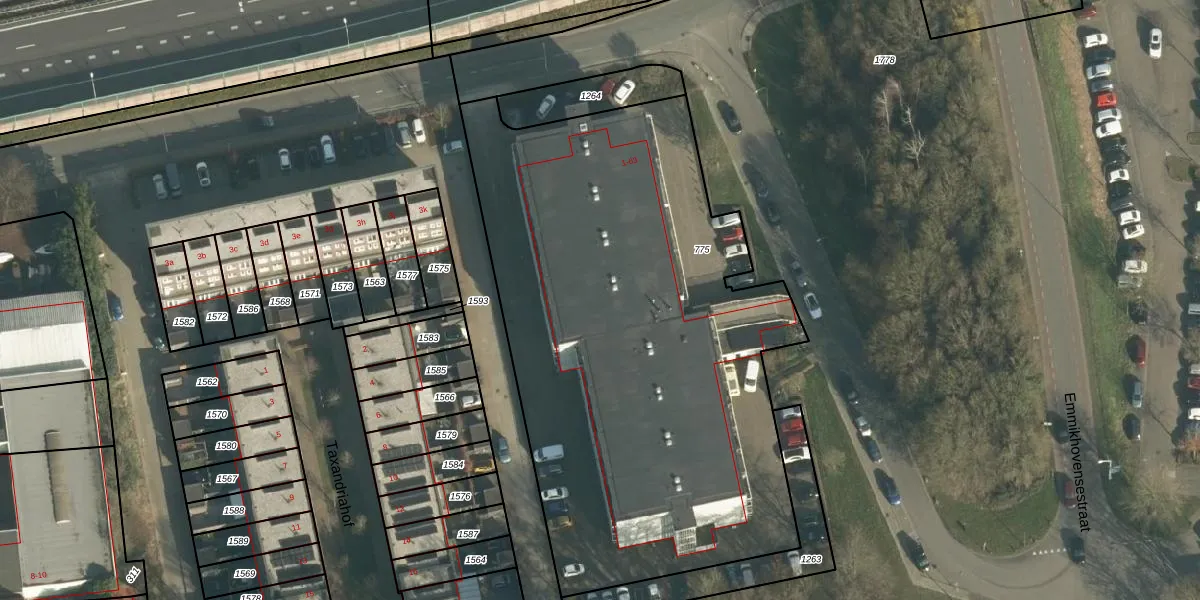 Het perceel waarop Heulstraat 45 staat heeft een oppervlakte van 3233 m². Dit is een zeer groot perceel. De perceeloppervlakte wordt geregistreerd door het Kadaster. Gedetailleerde informatie over de maten van dit perceel kunt u vinden in het rapport Kadastrale kaart met maatvoering van Heulstraat 45.