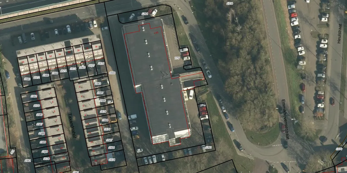 Het perceel waarop Heulstraat 63 staat heeft een oppervlakte van 3233 m². Dit is een zeer groot perceel. De perceeloppervlakte wordt geregistreerd door het Kadaster. Gedetailleerde informatie over de maten van dit perceel kunt u vinden in het rapport Kadastrale kaart met maatvoering van Heulstraat 63.