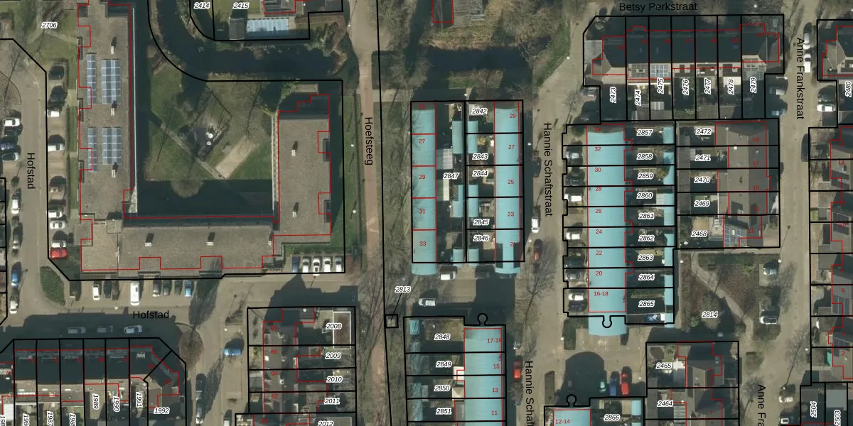 Het perceel waarop Hoefsteeg 31 staat heeft een oppervlakte van 479 m². Dit is een groot perceel. De perceeloppervlakte wordt geregistreerd door het Kadaster. Gedetailleerde informatie over de maten van dit perceel kunt u vinden in het rapport Kadastrale kaart met maatvoering van Hoefsteeg 31.