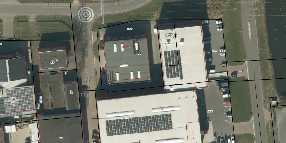 Het perceel waarop Industrieweg 90-k staat heeft een oppervlakte van 1977 m². Dit is een zeer groot perceel. De perceeloppervlakte wordt geregistreerd door het Kadaster. Gedetailleerde informatie over de maten van dit perceel kunt u vinden in het rapport Kadastrale kaart met maatvoering van Industrieweg 90-k.