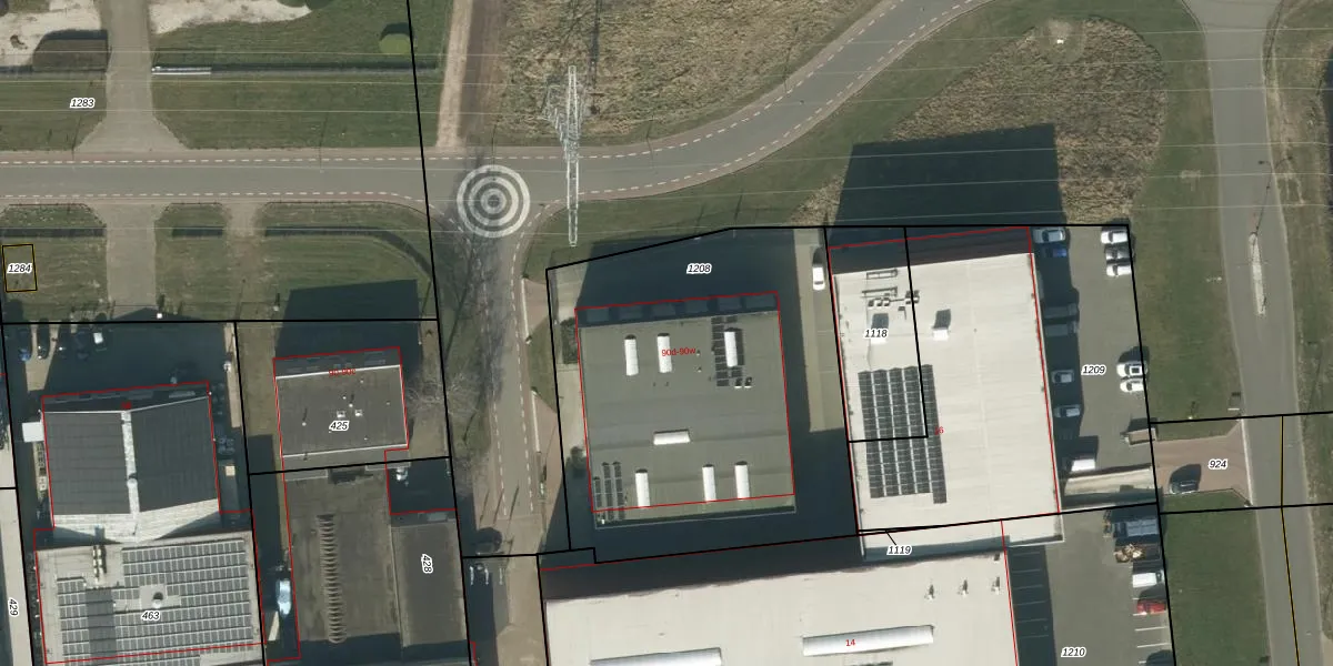 Het perceel waarop Industrieweg 90-s staat heeft een oppervlakte van 1977 m². Dit is een zeer groot perceel. De perceeloppervlakte wordt geregistreerd door het Kadaster. Gedetailleerde informatie over de maten van dit perceel kunt u vinden in het rapport Kadastrale kaart met maatvoering van Industrieweg 90-s.