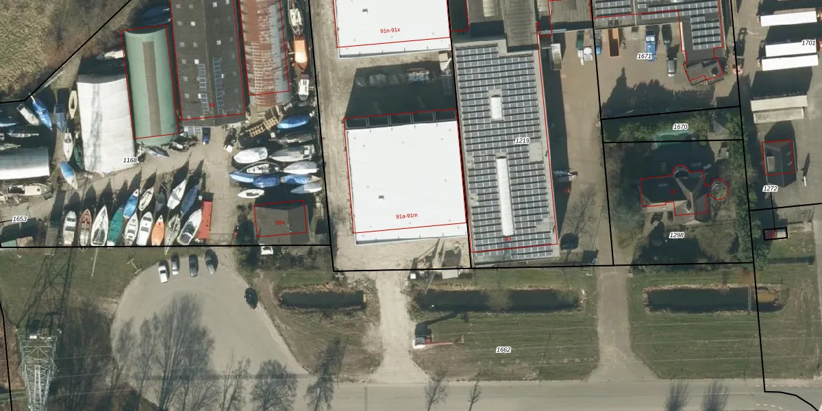 Het perceel waarop Industrieweg 91-c staat heeft een oppervlakte van 3254 m². Dit is een zeer groot perceel. De perceeloppervlakte wordt geregistreerd door het Kadaster. Gedetailleerde informatie over de maten van dit perceel kunt u vinden in het rapport Kadastrale kaart met maatvoering van Industrieweg 91-c.