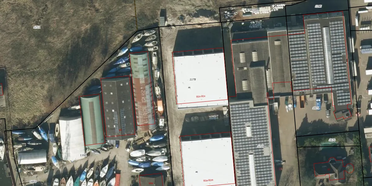 Industrieweg 91-n is gelegen op kadastraal perceel WWK00A1178. Deze kadastrale aanduiding is uniek en wordt gebruikt door het Kadaster om eigendomsrechten en andere zakelijke rechten vast te leggen. Het perceel maakt onderdeel uit van de kadastrale gemeente Waalwijk.