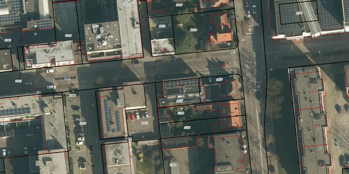 Het perceel waarop Irenestraat 46 staat heeft een oppervlakte van 358 m². Dit is een groot perceel. De perceeloppervlakte wordt geregistreerd door het Kadaster. Gedetailleerde informatie over de maten van dit perceel kunt u vinden in het rapport Kadastrale kaart met maatvoering van Irenestraat 46.