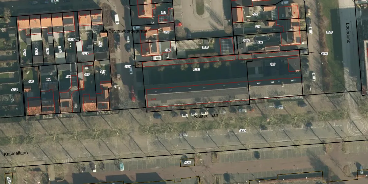 Kasteellaan 43 is gelegen op kadastraal perceel WWK00D2131. Deze kadastrale aanduiding is uniek en wordt gebruikt door het Kadaster om eigendomsrechten en andere zakelijke rechten vast te leggen. Het perceel maakt onderdeel uit van de kadastrale gemeente Waalwijk.