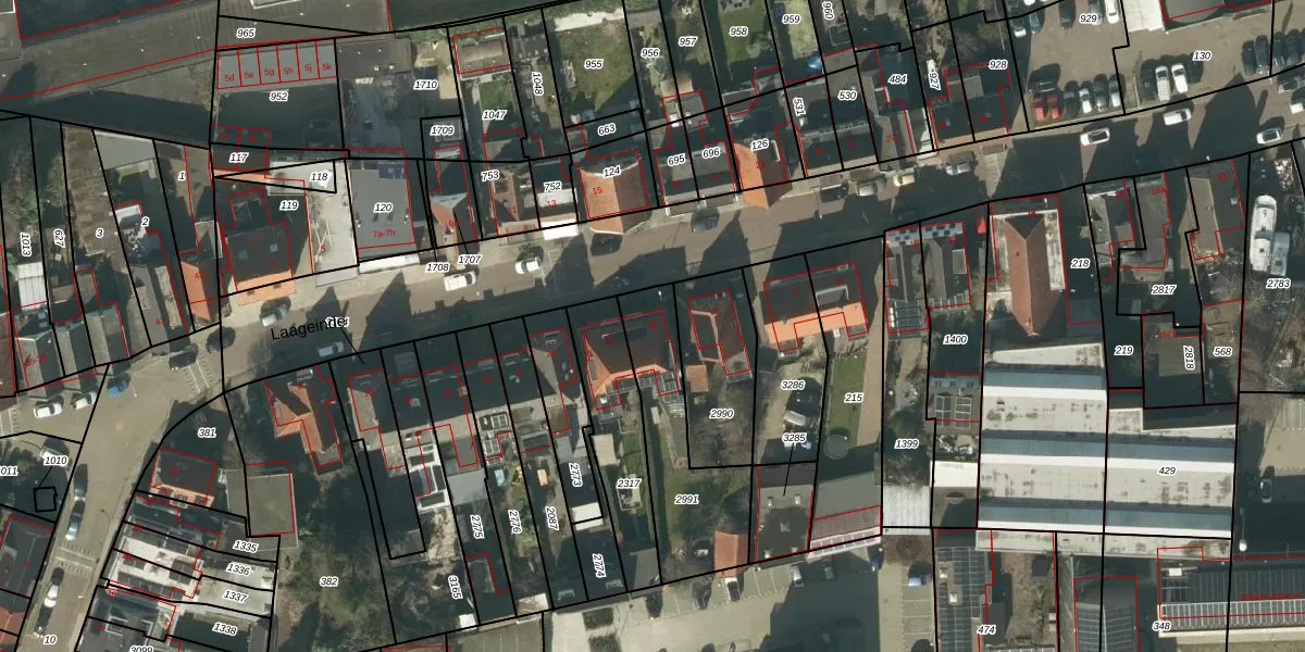 Gebruik de zoekbalk of klik op een perceel voor informatie over de adressen binnen dit perceel.