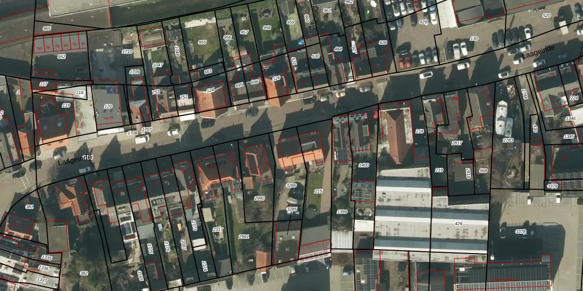 Laageinde 6 is gelegen op kadastraal perceel WWK00F3286. Deze kadastrale aanduiding is uniek en wordt gebruikt door het Kadaster om eigendomsrechten en andere zakelijke rechten vast te leggen. Het perceel maakt onderdeel uit van de kadastrale gemeente Waalwijk.
