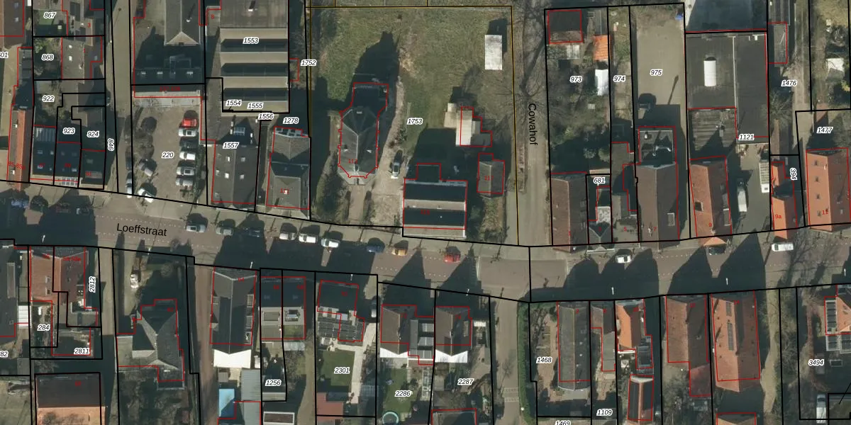 Het perceel waarop Loeffstraat 115 staat heeft een oppervlakte van 2562 m². Dit is een zeer groot perceel. De perceeloppervlakte wordt geregistreerd door het Kadaster. Gedetailleerde informatie over de maten van dit perceel kunt u vinden in het rapport Kadastrale kaart met maatvoering van Loeffstraat 115.