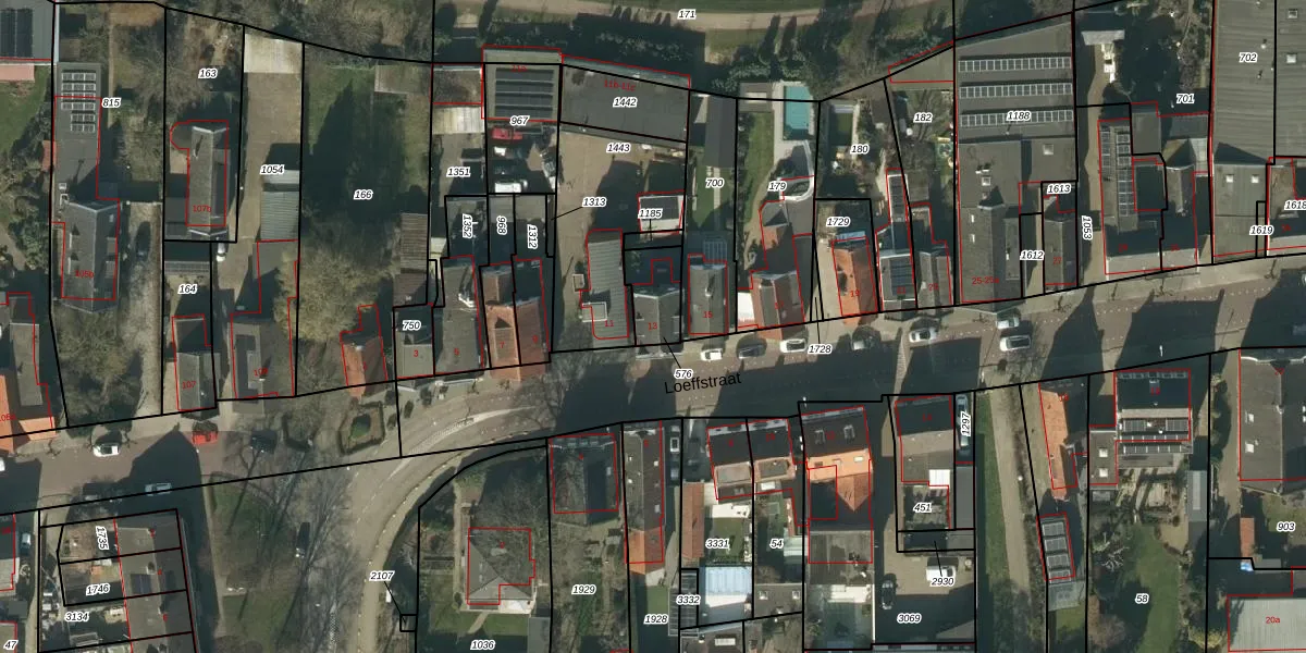 Het perceel waarop Loeffstraat 13 staat heeft een oppervlakte van 119 m². Dit is een middelgroot perceel. De perceeloppervlakte wordt geregistreerd door het Kadaster. Gedetailleerde informatie over de maten van dit perceel kunt u vinden in het rapport Kadastrale kaart met maatvoering van Loeffstraat 13.