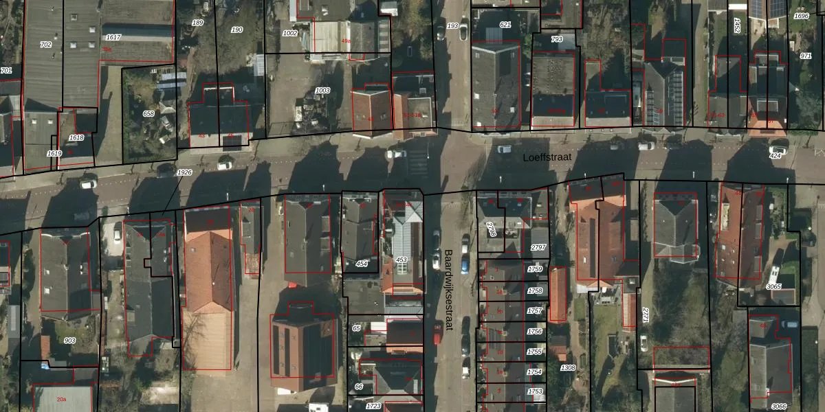 Het perceel waarop Loeffstraat 34-a staat heeft een oppervlakte van 417 m². Dit is een groot perceel. De perceeloppervlakte wordt geregistreerd door het Kadaster. Gedetailleerde informatie over de maten van dit perceel kunt u vinden in het rapport Kadastrale kaart met maatvoering van Loeffstraat 34-a.