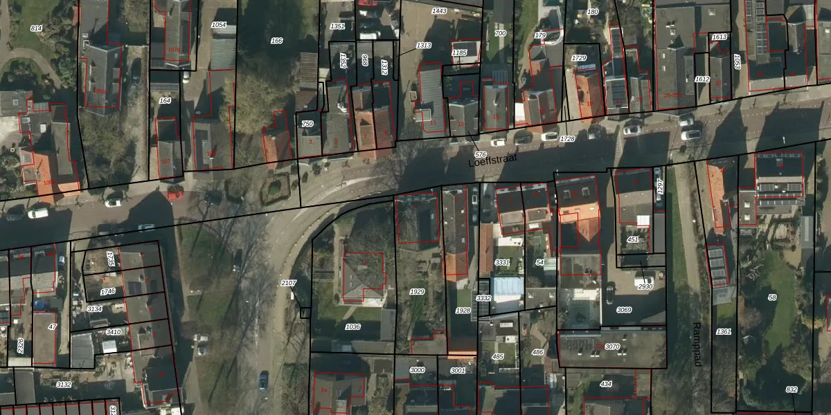 Het perceel waarop Loeffstraat 4 staat heeft een oppervlakte van 470 m². Dit is een groot perceel. De perceeloppervlakte wordt geregistreerd door het Kadaster. Gedetailleerde informatie over de maten van dit perceel kunt u vinden in het rapport Kadastrale kaart met maatvoering van Loeffstraat 4.