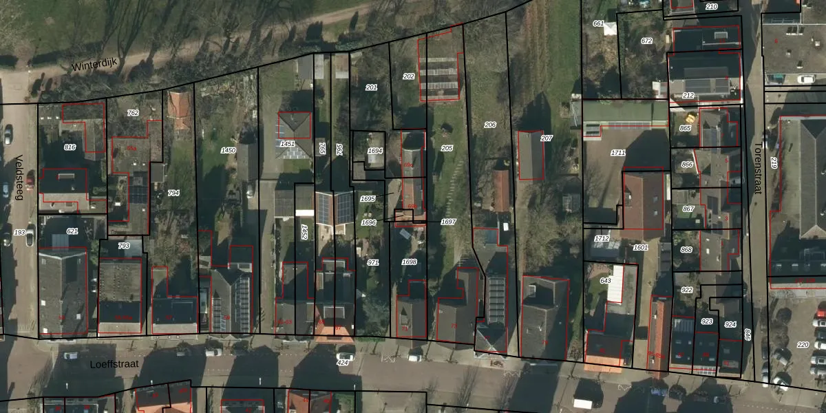 Het perceel waarop Loeffstraat 69-b staat heeft een oppervlakte van 120 m². Dit is een middelgroot perceel. De perceeloppervlakte wordt geregistreerd door het Kadaster. Gedetailleerde informatie over de maten van dit perceel kunt u vinden in het rapport Kadastrale kaart met maatvoering van Loeffstraat 69-b.