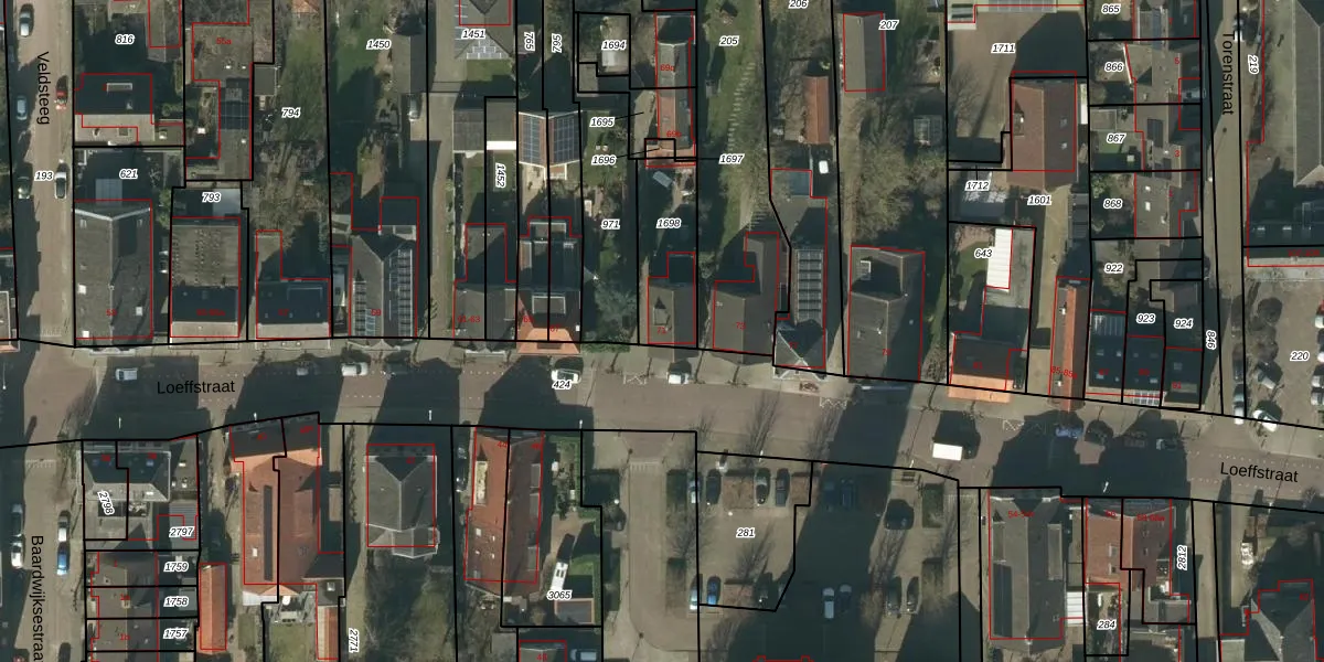 Het perceel waarop Loeffstraat 71 staat heeft een oppervlakte van 253 m². Dit is een middelgroot perceel. De perceeloppervlakte wordt geregistreerd door het Kadaster. Gedetailleerde informatie over de maten van dit perceel kunt u vinden in het rapport Kadastrale kaart met maatvoering van Loeffstraat 71.