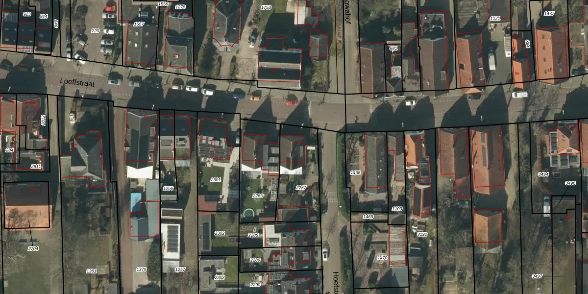 Het perceel waarop Loeffstraat 74 staat heeft een oppervlakte van 444 m². Dit is een groot perceel. De perceeloppervlakte wordt geregistreerd door het Kadaster. Gedetailleerde informatie over de maten van dit perceel kunt u vinden in het rapport Kadastrale kaart met maatvoering van Loeffstraat 74.