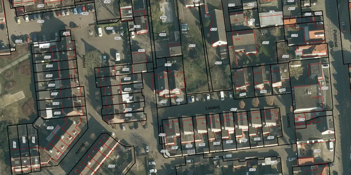 Gebruik de zoekbalk of klik op een perceel voor informatie over de adressen binnen dit perceel.