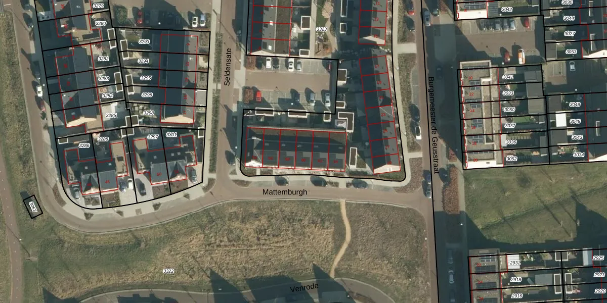 Het perceel waarop Mattemburgh 60 staat heeft een oppervlakte van 3395 m². Dit is een zeer groot perceel. De perceeloppervlakte wordt geregistreerd door het Kadaster. Gedetailleerde informatie over de maten van dit perceel kunt u vinden in het rapport Kadastrale kaart met maatvoering van Mattemburgh 60.