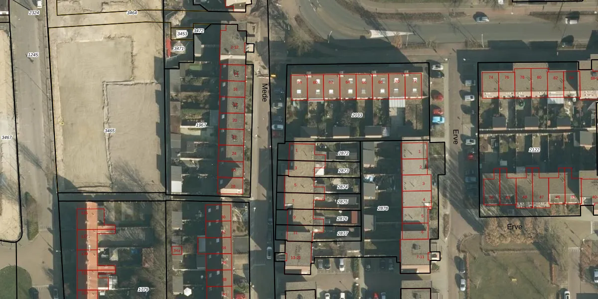 Het perceel waarop Mede 1 staat heeft een oppervlakte van 181 m². Dit is een middelgroot perceel. De perceeloppervlakte wordt geregistreerd door het Kadaster. Gedetailleerde informatie over de maten van dit perceel kunt u vinden in het rapport Kadastrale kaart met maatvoering van Mede 1.