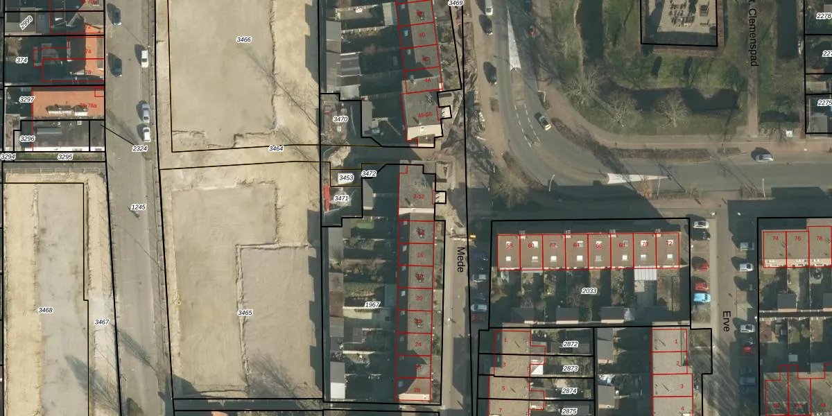 Het perceel waarop Mede 10 staat heeft een oppervlakte van 1495 m². Dit is een zeer groot perceel. De perceeloppervlakte wordt geregistreerd door het Kadaster. Gedetailleerde informatie over de maten van dit perceel kunt u vinden in het rapport Kadastrale kaart met maatvoering van Mede 10.