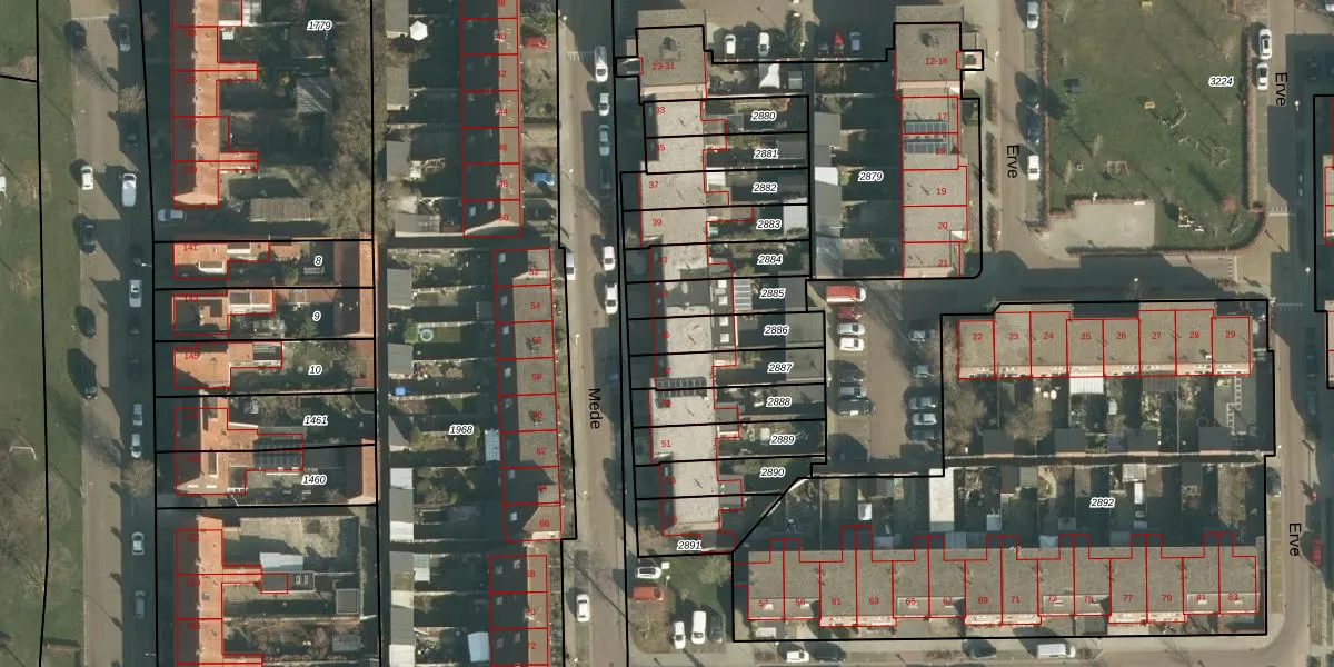 Het perceel waarop Mede 45 staat heeft een oppervlakte van 160 m². Dit is een middelgroot perceel. De perceeloppervlakte wordt geregistreerd door het Kadaster. Gedetailleerde informatie over de maten van dit perceel kunt u vinden in het rapport Kadastrale kaart met maatvoering van Mede 45.