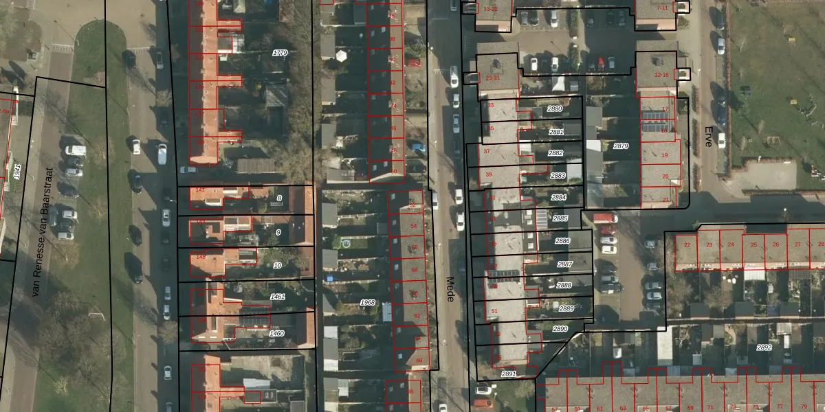 Het perceel waarop Mede 52 staat heeft een oppervlakte van 3970 m². Dit is een zeer groot perceel. De perceeloppervlakte wordt geregistreerd door het Kadaster. Gedetailleerde informatie over de maten van dit perceel kunt u vinden in het rapport Kadastrale kaart met maatvoering van Mede 52.