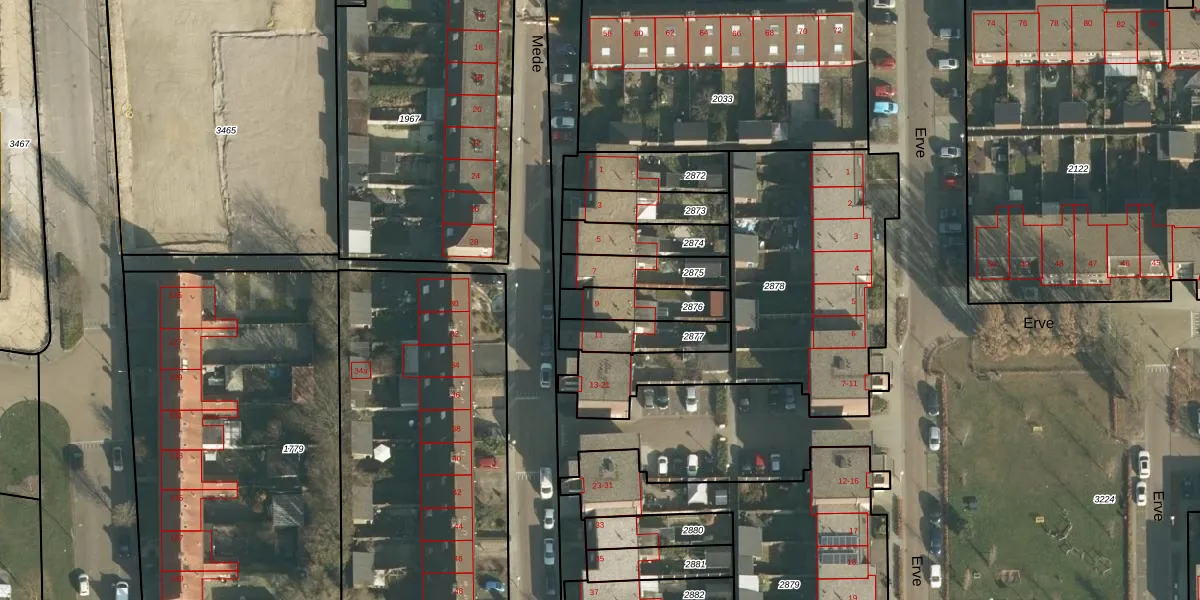 Het perceel waarop Mede 9 staat heeft een oppervlakte van 151 m². Dit is een middelgroot perceel. De perceeloppervlakte wordt geregistreerd door het Kadaster. Gedetailleerde informatie over de maten van dit perceel kunt u vinden in het rapport Kadastrale kaart met maatvoering van Mede 9.