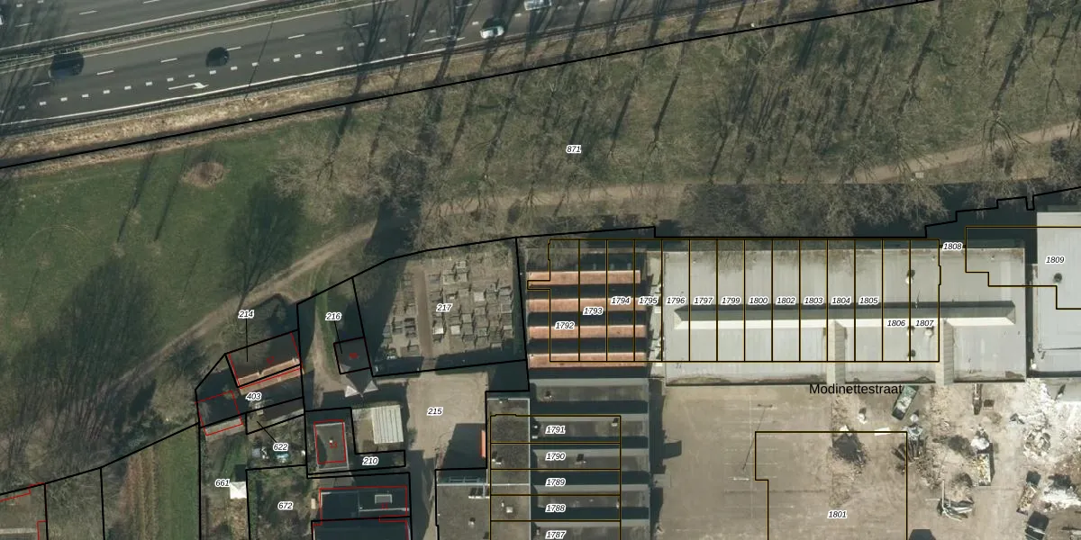 Modinettestraat 1 is gelegen op kadastraal perceel WWK00G1786. Deze kadastrale aanduiding is uniek en wordt gebruikt door het Kadaster om eigendomsrechten en andere zakelijke rechten vast te leggen. Het perceel maakt onderdeel uit van de kadastrale gemeente Waalwijk.