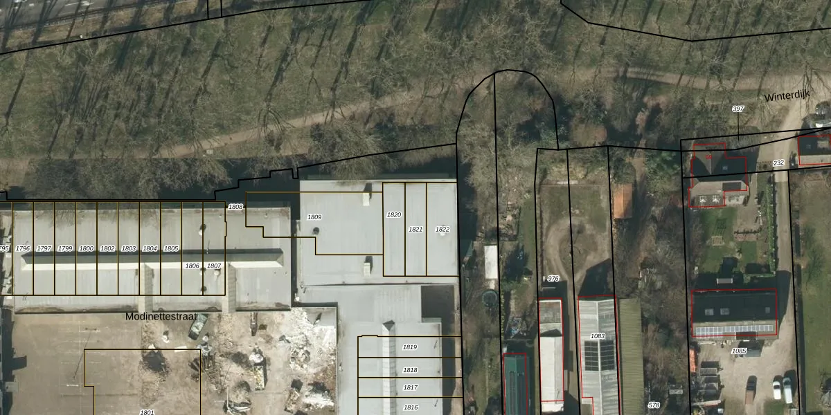 Modinettestraat 30 is gelegen op kadastraal perceel WWK00G1821. Deze kadastrale aanduiding is uniek en wordt gebruikt door het Kadaster om eigendomsrechten en andere zakelijke rechten vast te leggen. Het perceel maakt onderdeel uit van de kadastrale gemeente Waalwijk.