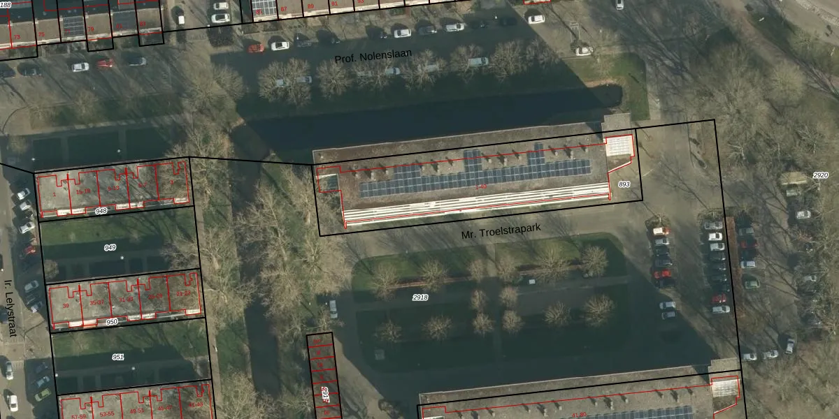 Het perceel waarop Mr. Troelstrapark 1-p staat heeft een oppervlakte van 1316 m². Dit is een zeer groot perceel. De perceeloppervlakte wordt geregistreerd door het Kadaster. Gedetailleerde informatie over de maten van dit perceel kunt u vinden in het rapport Kadastrale kaart met maatvoering van Mr. Troelstrapark 1-p.