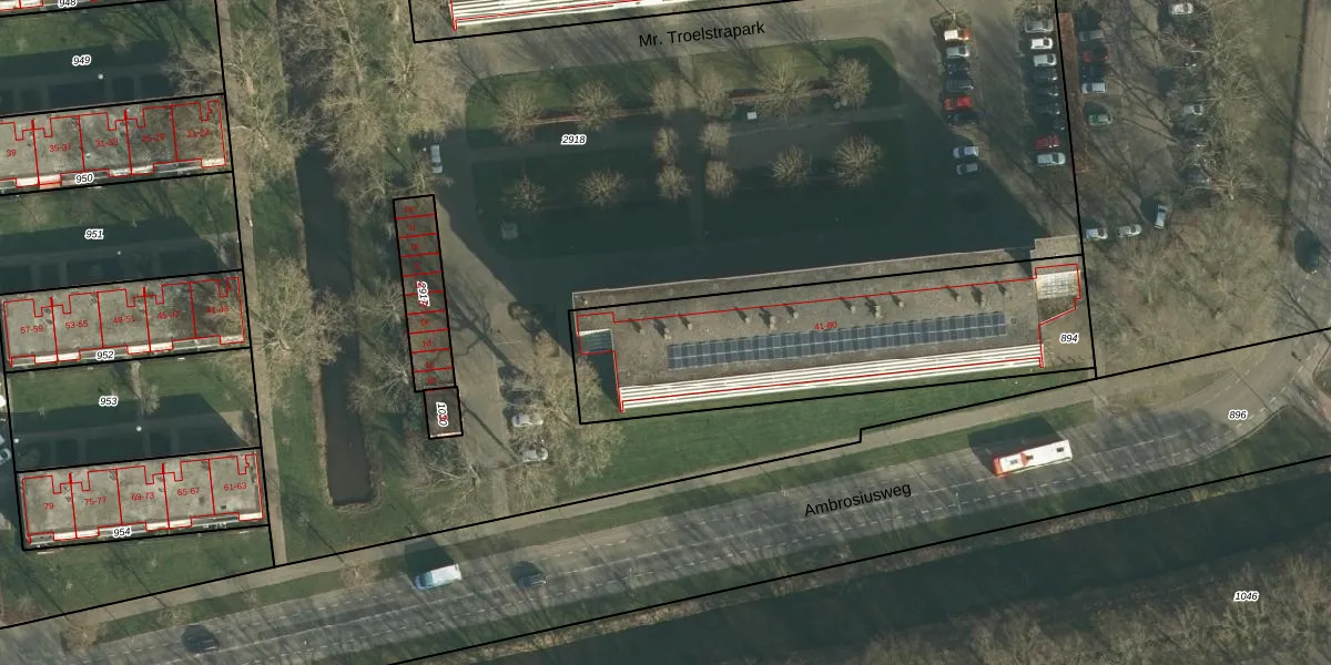 Het perceel waarop Mr. Troelstrapark 44 staat heeft een oppervlakte van 1316 m². Dit is een zeer groot perceel. De perceeloppervlakte wordt geregistreerd door het Kadaster. Gedetailleerde informatie over de maten van dit perceel kunt u vinden in het rapport Kadastrale kaart met maatvoering van Mr. Troelstrapark 44.