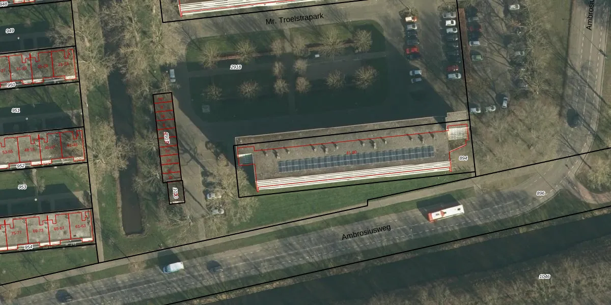 Het perceel waarop Mr. Troelstrapark 47 staat heeft een oppervlakte van 1316 m². Dit is een zeer groot perceel. De perceeloppervlakte wordt geregistreerd door het Kadaster. Gedetailleerde informatie over de maten van dit perceel kunt u vinden in het rapport Kadastrale kaart met maatvoering van Mr. Troelstrapark 47.