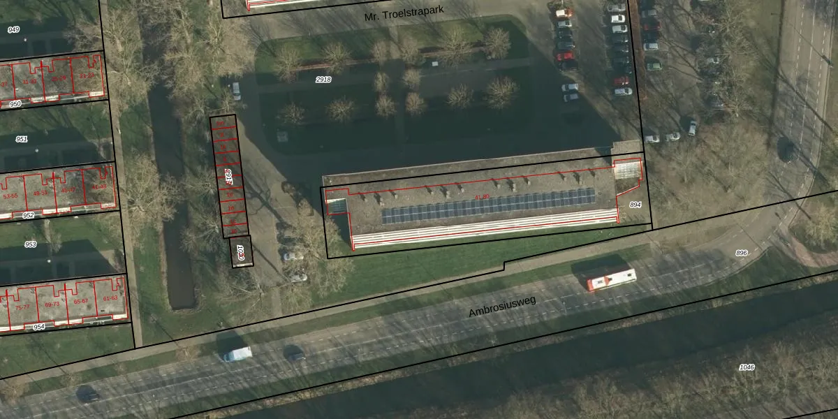 Het perceel waarop Mr. Troelstrapark 65 staat heeft een oppervlakte van 1316 m². Dit is een zeer groot perceel. De perceeloppervlakte wordt geregistreerd door het Kadaster. Gedetailleerde informatie over de maten van dit perceel kunt u vinden in het rapport Kadastrale kaart met maatvoering van Mr. Troelstrapark 65.